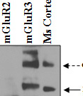 Source: This mouse monoclonal antibody was raised against a peptide derived from the C-terminal epitope (amino acids 851-865) of human mGluR3 coupled to KLH. Hybridoma media was obtained from cells grown in culture and concentrated by ammonium sulfate.